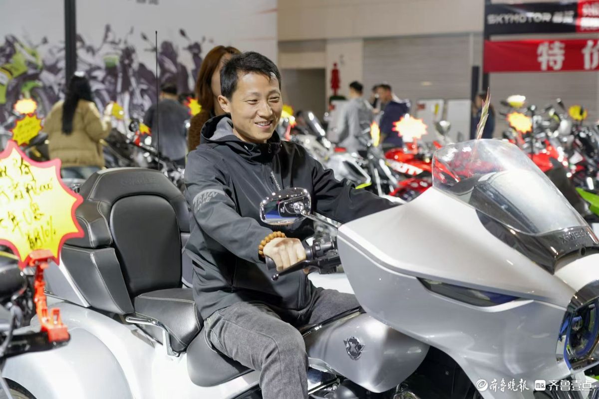 4月9日,2026齐鲁春季车展(第五十三届齐鲁汽车展览交易会)在山东国际会展中心盛大开幕。在机车展区,市民们被动感炫酷的机车点燃激情,忍不住上车“试驾”一番。各式造型硬朗,配色潮流的机车亮相齐鲁春季车展,硬朗复古的车身加上凌厉的线条尽显机械魅力,唤醒了市民心中的机车情怀,让大家在车展中邂逅热爱,点燃骑行激情。 (齐鲁晚报·齐鲁壹点记者 王媛 实习生 徐佳宁)
