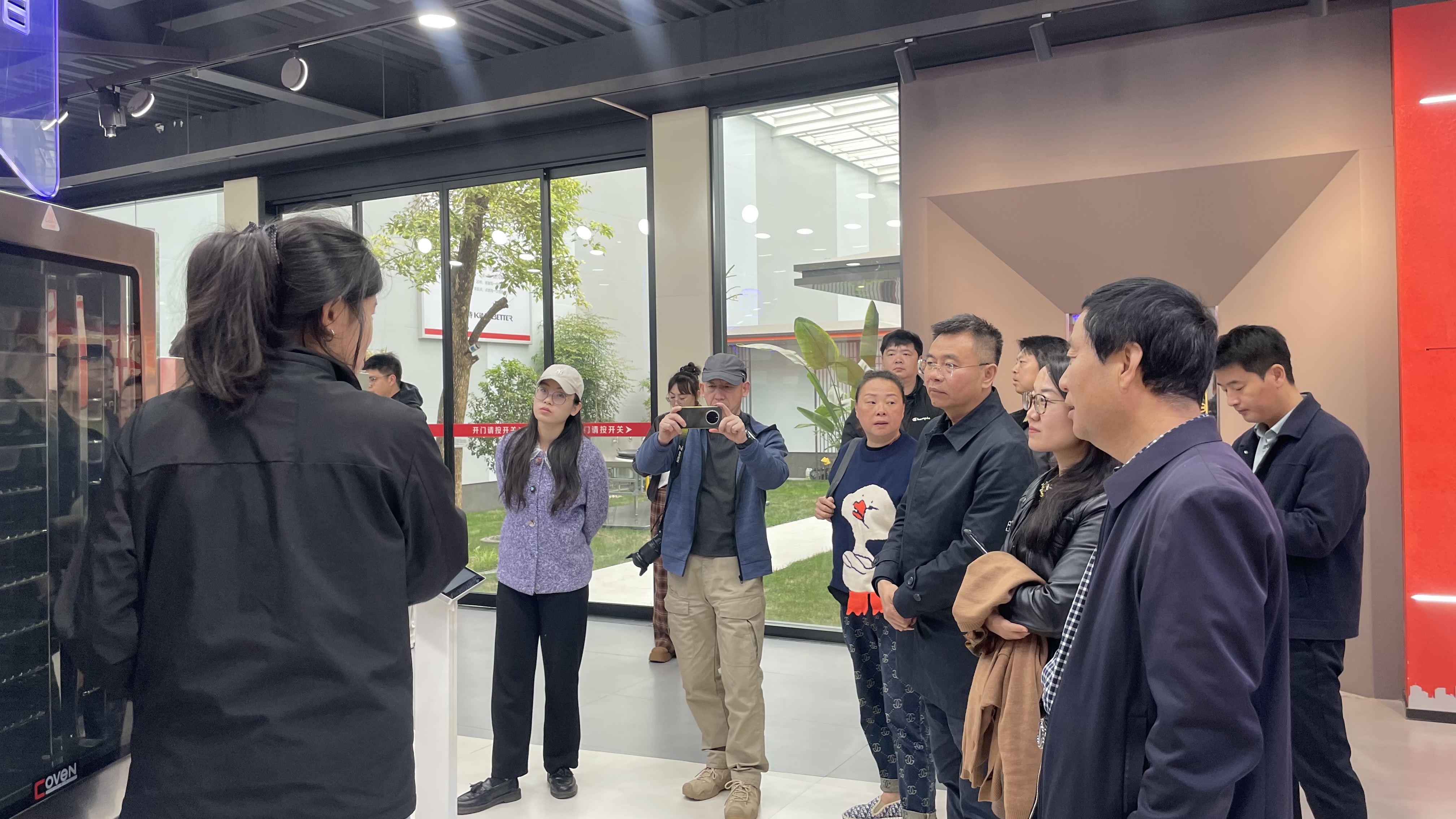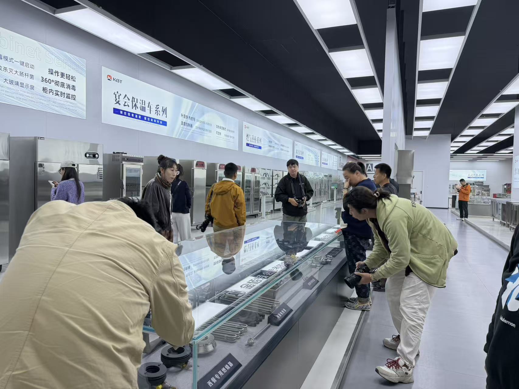 4月9日,总编记者们来到山东金佰特商用厨具有限公司。“没想到一家厨具企业,竟然把物联网、AI和VR都玩转了。” 在万能蒸烤箱演示区,工作人员通过手机APP远程操控设备,烤箱内置的传感器可自动识别食材并匹配最佳烹饪曲线。嘉宾们还亲身体验了“厨链”设计软件——戴上VR眼镜,就能“走进”尚未建成的厨房,实时调整设备布局。“这种数字化手段,能帮餐饮企业节省大量时间和改造成本。”一位来自财经媒体的记者感叹道。
