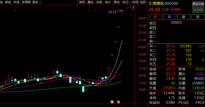 汇源通信(000586)涨停走出5连板。在部分业内人士看来,汇源通信连拉涨停板背后,一定程度上是近期光通信板块有所走强,光纤概念延续强势。