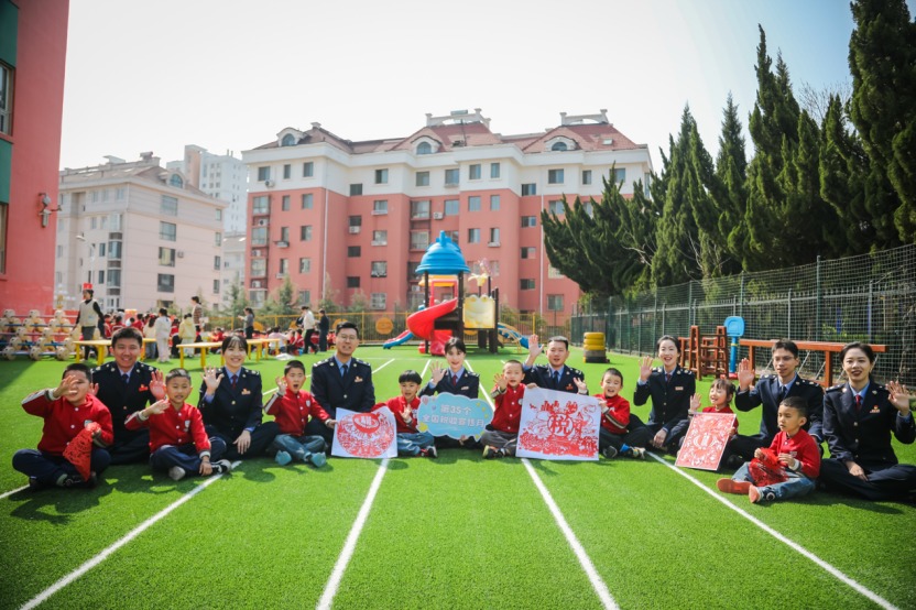 随后,孩子们手持精心创作的剪纸作品,与税务工作人员在绿茵场上合影留念。一张张稚嫩的笑脸、一幅幅精美的剪纸、一抹抹深沉的“税务蓝”,交织成春日里最鲜活的色彩,定格下传统文化与税收宣传双向赋能的美好瞬间。