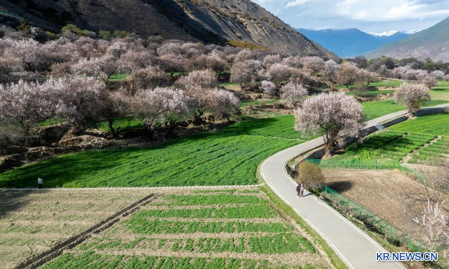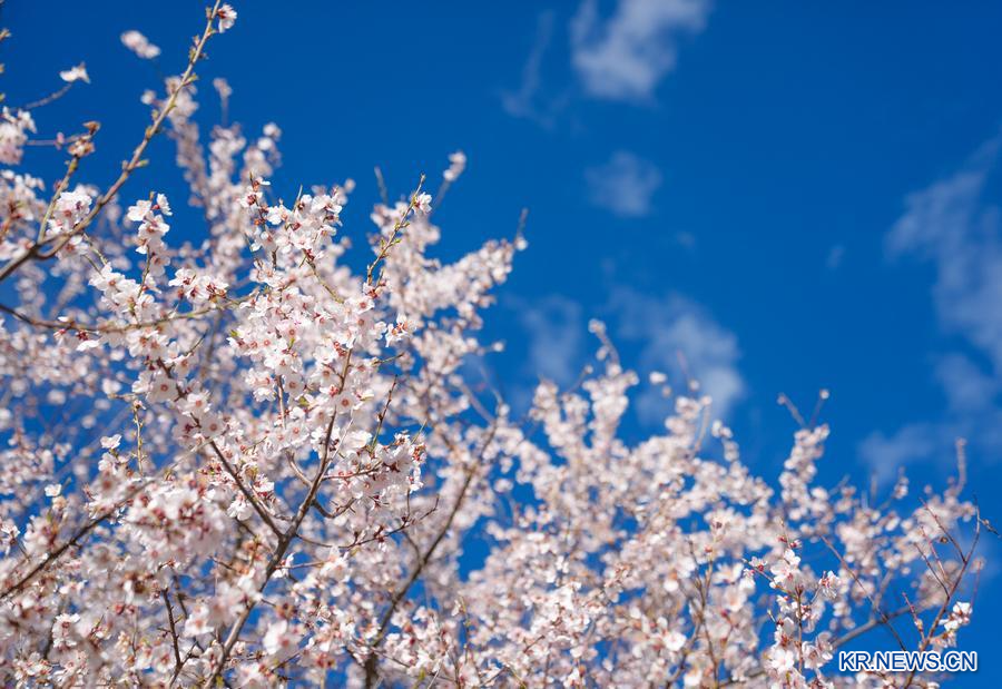 2일 린즈시 바이(巴宜)구 둬당(朶當)촌에서 포착한 복숭아꽃. (사진/신화통신)