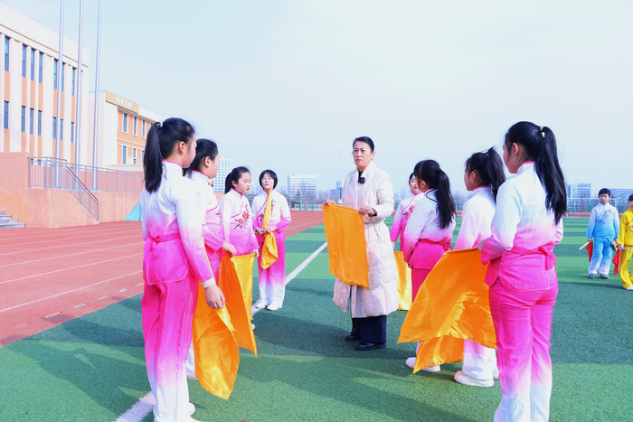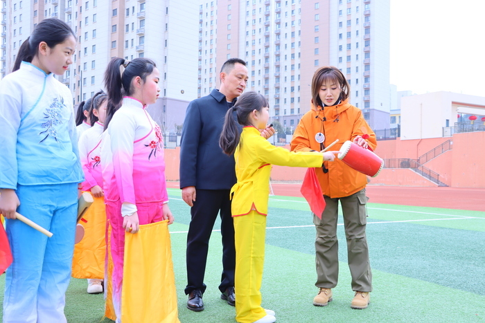 这场非遗盛宴的背后,是泰和小学对教育部“健康第一”教育理念的深度践行与创新落地。梆鼓秧歌集肢体运动、节奏韵律、团队协作于一体,整套动作融合跑跳、旋转、挥臂、敲击等多元肢体锻炼,有效丰富学生体育活动形式,落实每日体育锻炼要求,在趣味运动中增强学生体质、锻炼协调能力。表演过程中,学生需默契配合、整齐列队,在集体协作中培养沟通能力、责任意识与团队精神;在学习非遗历史、演绎传统技艺的过程中,厚植文化自信与家国情怀,实现美育、德育与心理健康教育的有机统一。正如校长姜燕所言:“每一次击鼓起舞,都是孩子们体质、品格与文化素养的三重锤炼。”