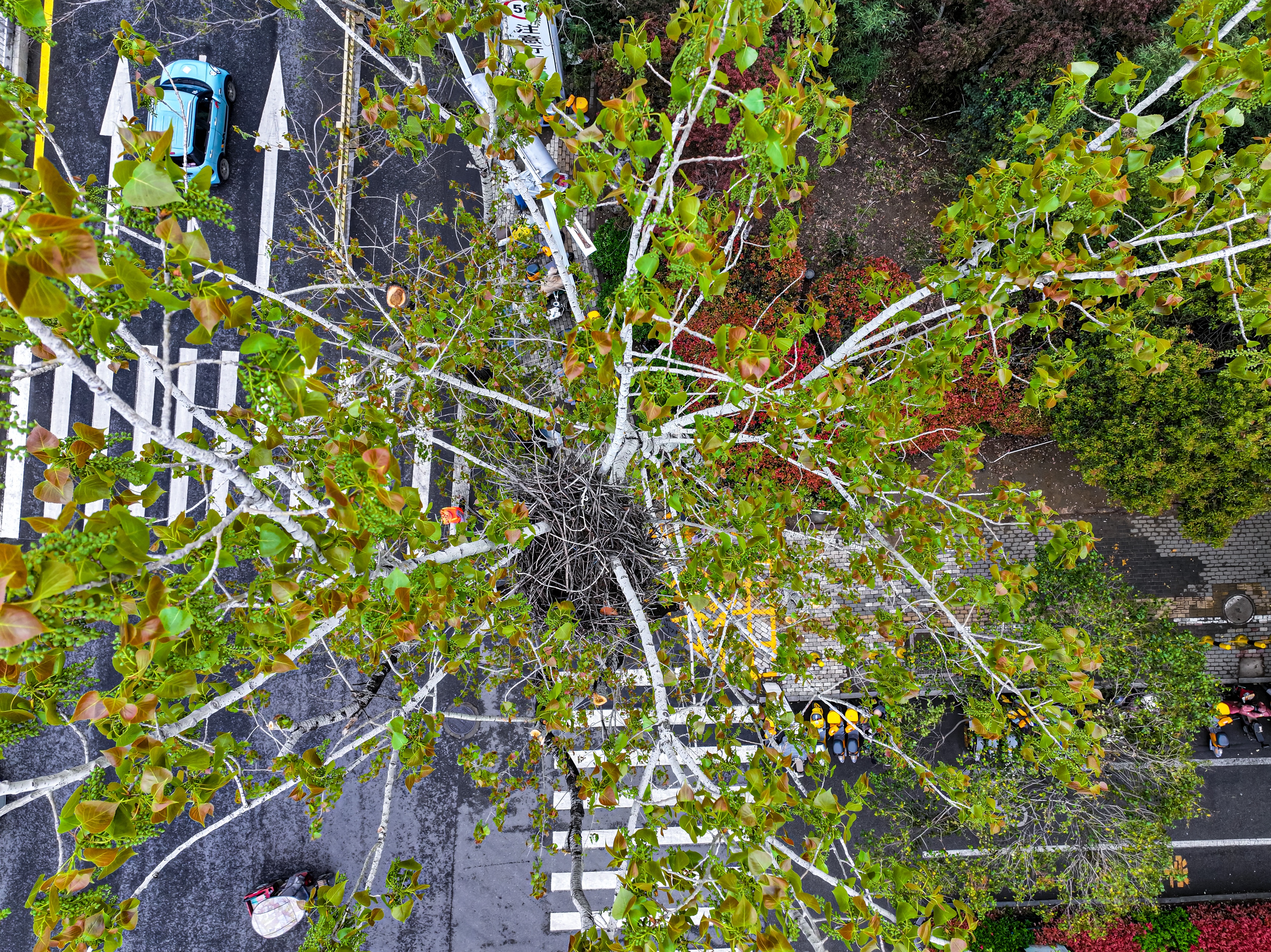 近日,台儿庄园林工人修剪枣庄第三十九中学路口一棵近20米杨树时,特意留下中间带有鸟窝的树枝,给生命留一处安身地,看到此景的同学们都反映说,这一幕简直太暖心了!(大众新闻记者孟令洋通讯员高启华孔闯)