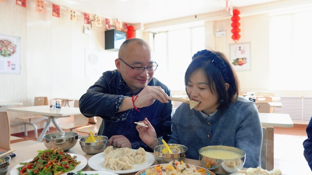 中午,新疆矿业特意安排孔健夫妇在职工餐厅共进午餐。