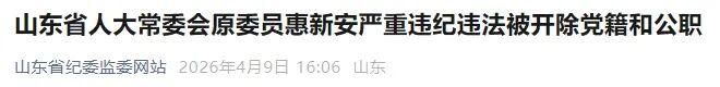 经山东省委批准,山东省纪委监委对省人大常委会原委员惠新安严重违纪违法问题进行了立案审查调查。