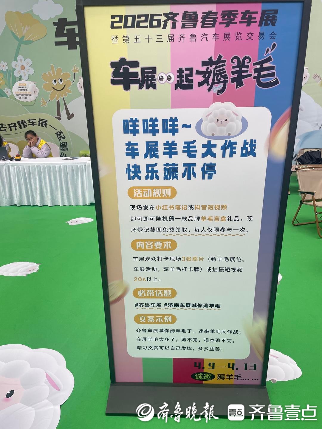 4月9日,2026齐鲁春季车展开幕首日,萌趣可爱的“云咩咩”惊喜亮相齐鲁现场,为逛展市民送上满满惊喜。
