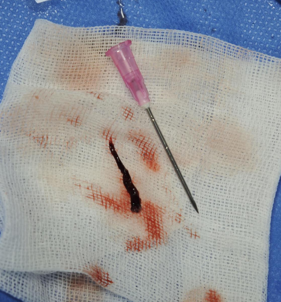 重症医学科副主任张萌第一时间为患者床旁实施了IABP(主动脉内球囊反搏)穿刺置管,为心脏“减负助力”,争取介入治疗时间;急救中心主任李长江紧急会诊,当晚20:10在导管室为患者实施经皮冠状动脉血栓抽吸术+球囊扩张成形术,术中吸出大量血栓,成功开通闭塞血管,患者生命体征逐渐稳定,再次转回ICU进行加强监护治疗。