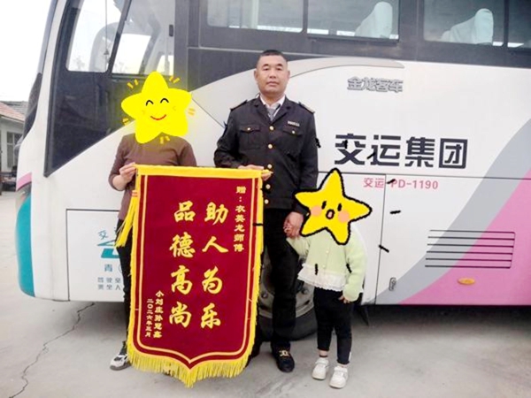青岛平度:交运驾驶员衣英龙救下迷路幼童家属送锦旗致谢