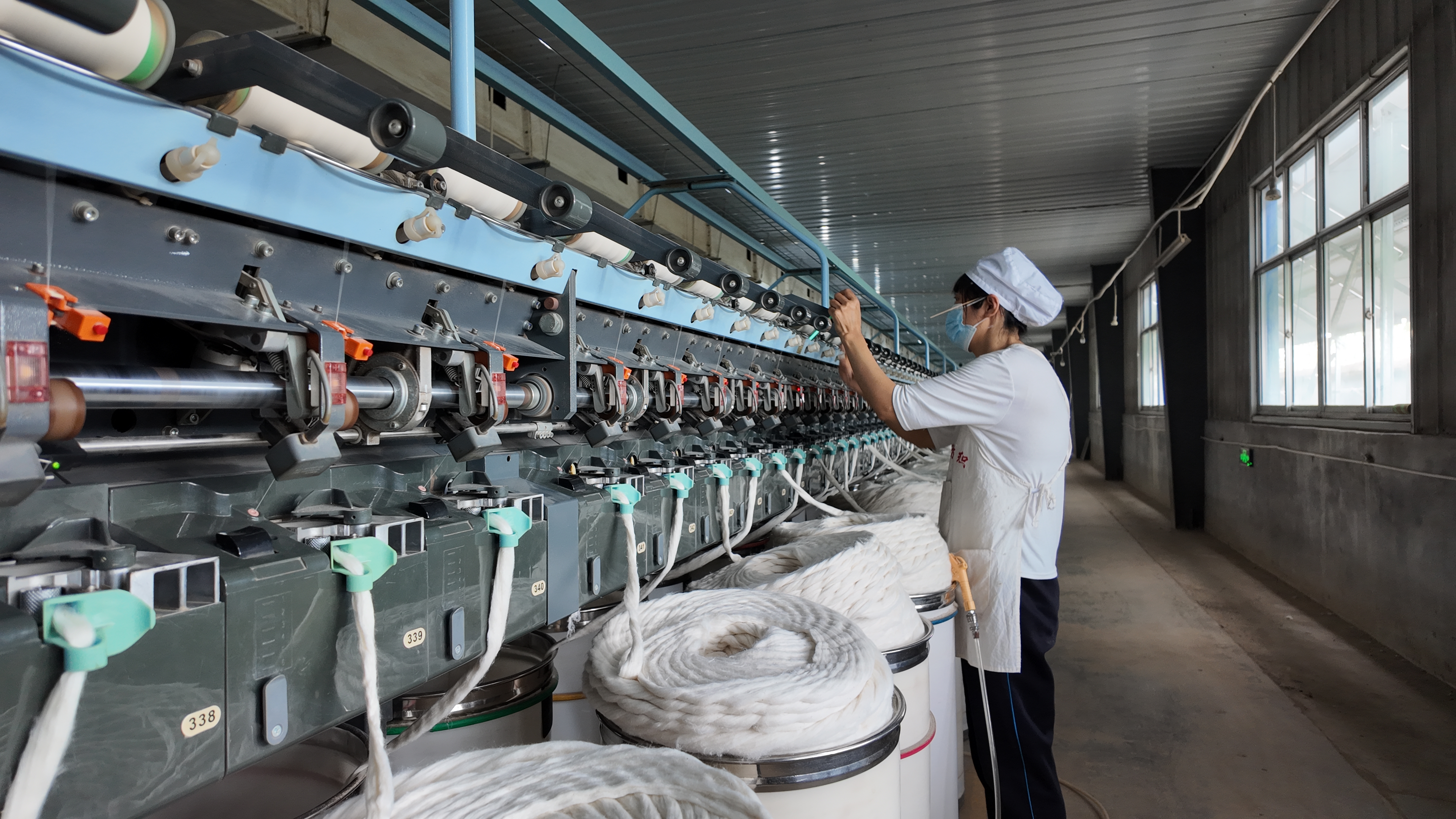 “目前我们的棉纱产品订单已经排至今年 8 月份,现在车间正满负荷赶制的是运往江苏宿迁的1500吨棉纱制品订单,这批订单主要用于下游纺织企业生产高端针织面料,要求高、交货期紧,我们加足马力确保按时交付。” 金絮龙纺织总经理谷思冉言语间难掩喜悦,“今年第一季度我们迎来了‘开门红’,1到3月份,公司营收达6200万元,同比增长194.7%,产量近6000吨,这一成绩的取得,得益于我们构建的‘籽棉收购—皮棉加工—纺纱成线’的一体化产业结构。”