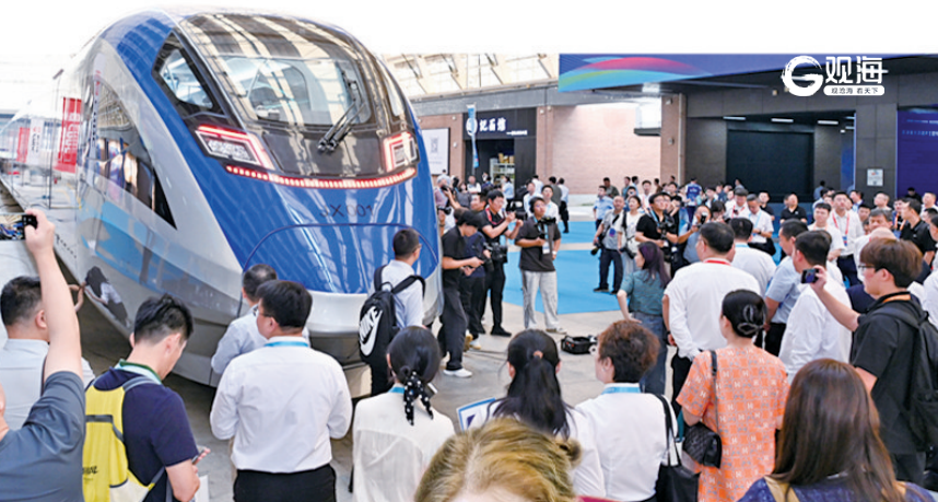 首列中国标准智能市域列车亮相2025中国国际城市轨道交通展览会。