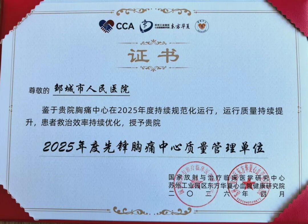 此次荣誉的获得,既是对邹城市人民医院胸痛中心过往建设与救治工作的充分肯定,更是对中心持续精进、高质量发展的有力鞭策。