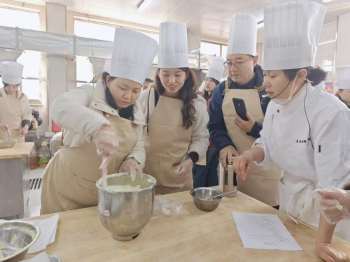 商务管理系牵手御座宾馆、东岳山庄、万达嘉华酒店等 15家企业,将烹饪、酒店服务、形象设计与民生需求紧密相连,特邀行业协会会长郭宏琨授课驻堂,把剪纸、面塑、缠花等泰山非遗融入课堂,让技能人才带着文化温度服务城市烟火。
