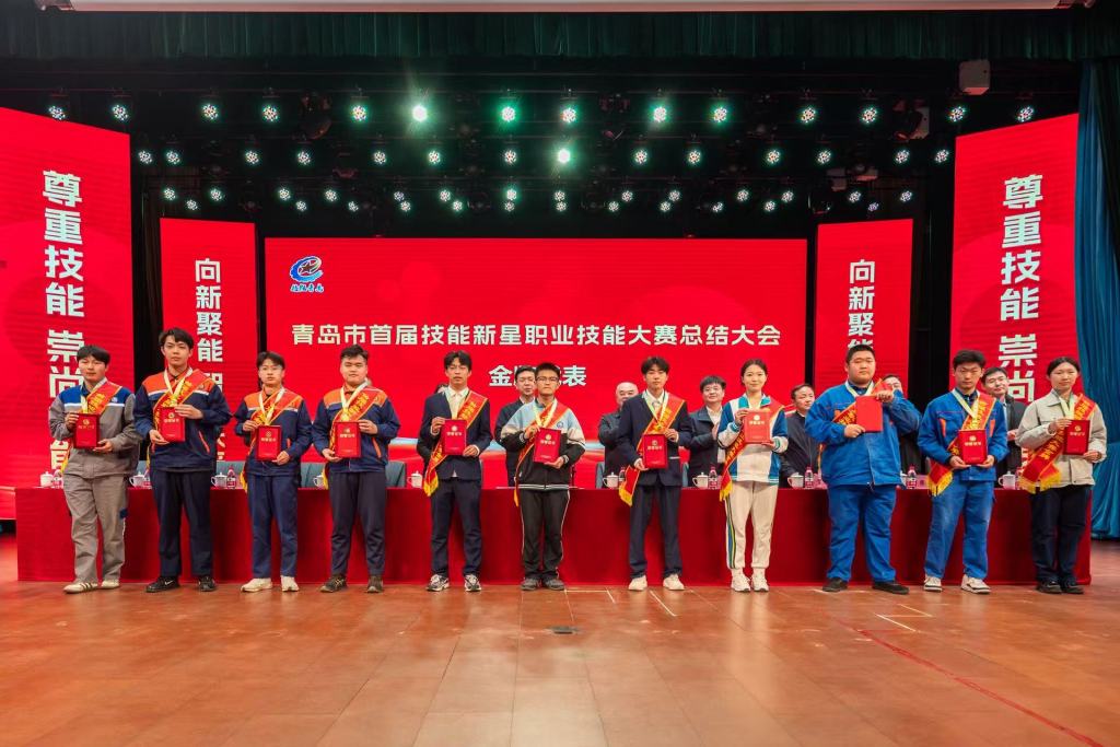 活动分两阶段举行,第一阶段为青岛市首届技能新星职业技能大赛总结大会,与会领导为青岛市首届技能新星大赛获奖选手、优秀指导教师及“青岛市技能新星”获得者颁发了奖牌和荣誉证书,并邀请获奖人员代表作交流发言。
