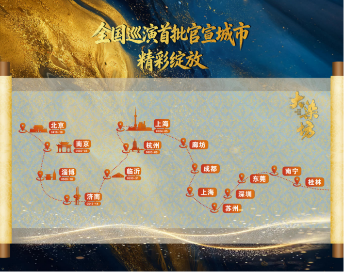 目前,舞剧《大染坊》北京、南京、淄博、济南、临沂、杭州、上海站已正式开票,全国首轮巡演计划覆盖16座城市,共计34场演出,其余城市场次将陆续开票。