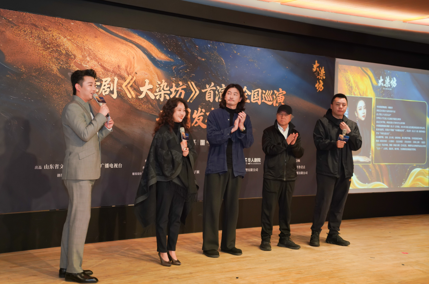 发布会上,山东省文化和旅游厅党组成员、副厅长蒋庆鹏,山东广播电视台党委委员、副总编辑兼电视卫星频道总监王忠等单位负责人,以及各主创代表、嘉宾共同登台,为舞剧《大染坊》首演暨全国巡演正式启幕。启动仪式圆满完成,标志着这部承载鲁商精神与家国情怀的舞剧作品正式踏上全国巡演的征程。