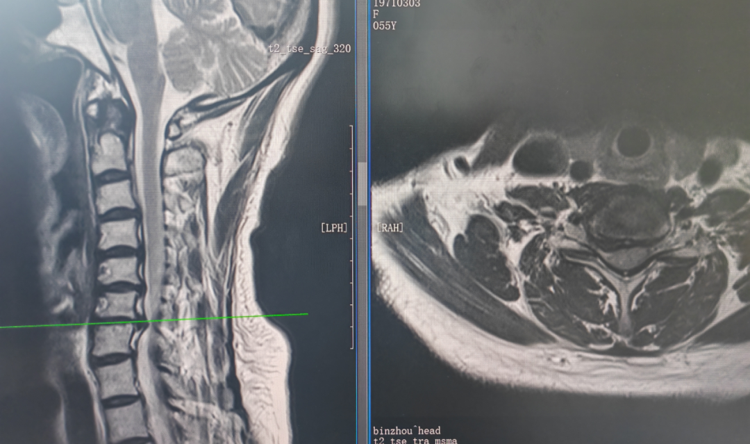 患者苑某(化名)因颈后及右肩关节疼痛不适,放射至前臂,伴抬肩功能受限,手指麻木不适,多方求医无果后来院。经详细检查和颈椎及肩关节核磁共振成像(MRI)显示,确诊为颈椎间盘突出为主要问题,压迫神经根,确诊为神经根型颈椎病。