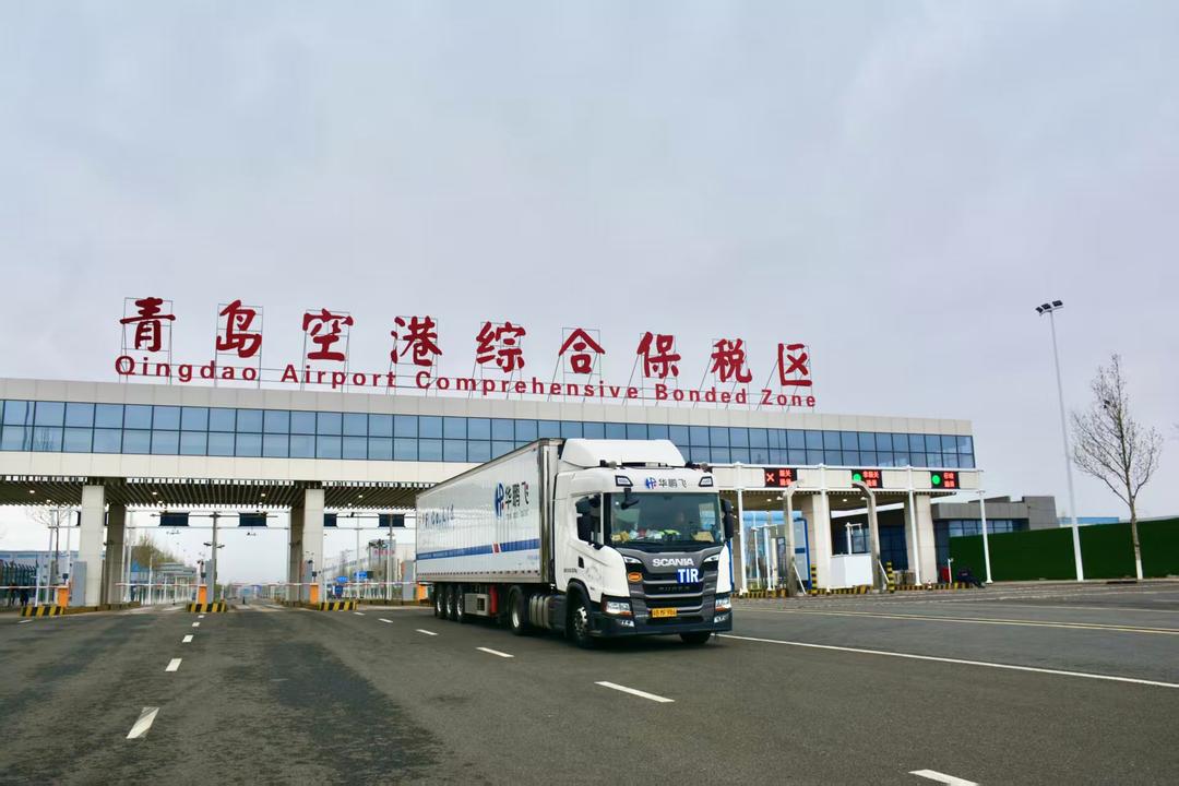 今年初,海关总署发布公告,将跨境电商商品、保税货物纳入了TIR运输的适用范围。依托该政策利好,上合示范区联动青岛胶东机场海关,落地“TIR+保税转口”业务,实现TIR国际运输便利化与综保区国际转口政策优势的深度融合。在该模式下,货物以“区内国际中转”监管方式入区后,全程充分享受入区保税、免征关税及简化通关手续等政策,在区内完成换装、集拼等操作后,便可搭乘TIR国际运输车辆,凭借TIR证书直达目的地。
