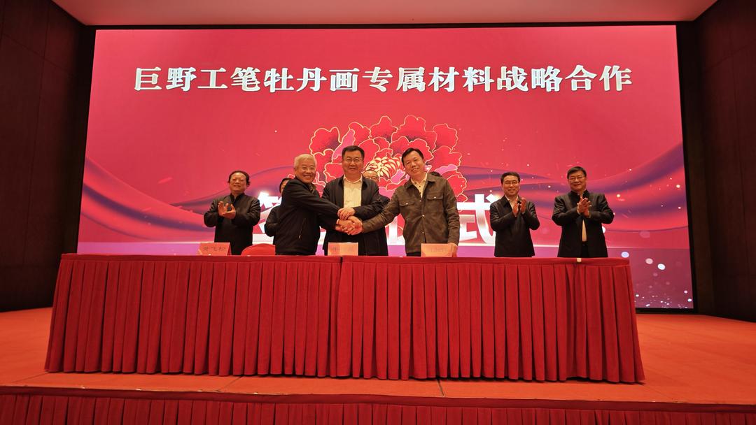 论坛现场,多项重磅合作集中落地、成果丰硕。活动依次举行巨野工笔牡丹画海外推广大使授牌仪式、国花牡丹创新发展博士站导师聘任仪式,并与相关企业签署专属材料战略合作协议、全域销售渠道战略合作协议。一系列务实举措,标志着巨野工笔牡丹画在品牌国际化、人才专业化、市场全域化建设上迈出关键步伐,为产业高质量发展注入强劲动能。
