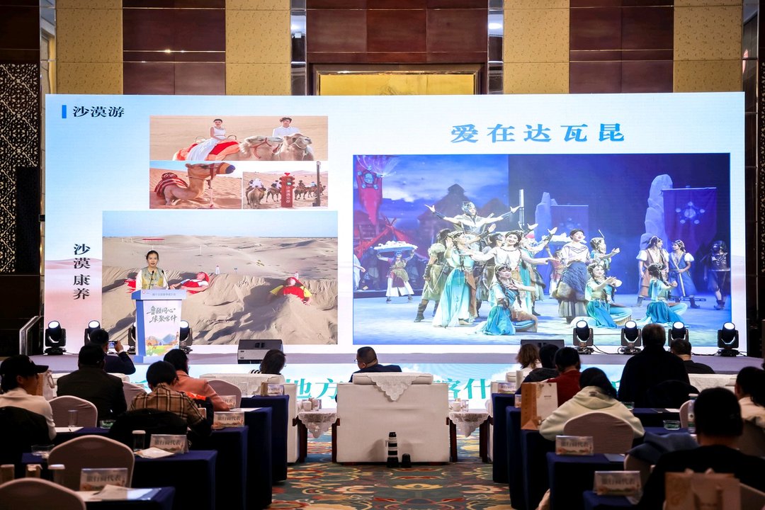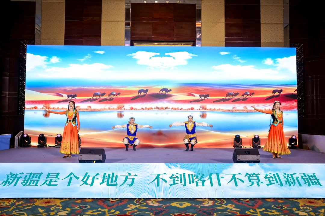 推介会在特色歌舞《我的爱献给祖国母亲》中拉开帷幕。喀什地区及疏勒县、麦盖提县、岳普湖县、英吉沙县等县市文旅代表,通过图文、视频全方位展示喀什古城、慕士塔格峰、达瓦昆沙漠、刀郎文化、非遗小刀等特色文旅资源,让嘉宾沉浸式感受丝路喀什的独特魅力。
