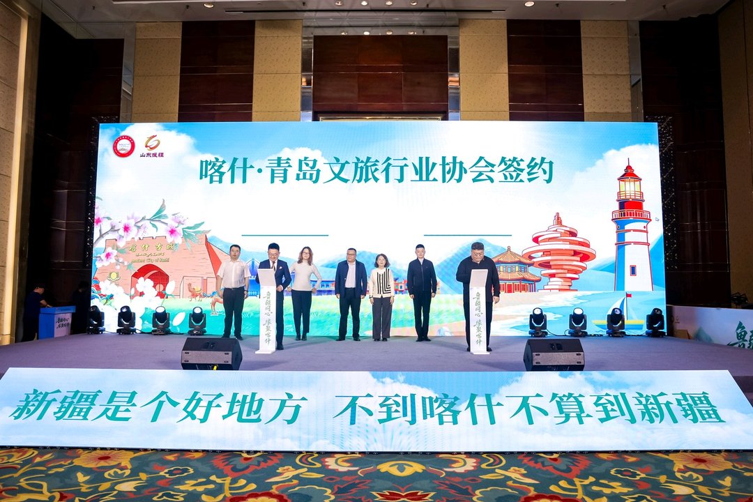 签约环节,喀什与青岛两地文旅行业协会签署战略合作协议,将在旅游线路开发、产品推广、客源互送、人才交流等方面开展深度合作,助力“引客入喀”,推动两地文旅资源价值最大化。此外,现场还设置文旅体验区与喀什礼物市集,展示非遗技艺与特色物产,将喀什的风土人情、民俗文化、特色物产生动立体地呈现在嘉宾面前,引得现场嘉宾频频驻足关注。