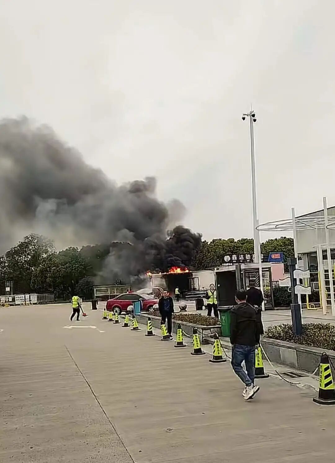 安徽一服务区车辆起火,工作人员大声制止拍摄,服务区回应:围观人多有危险