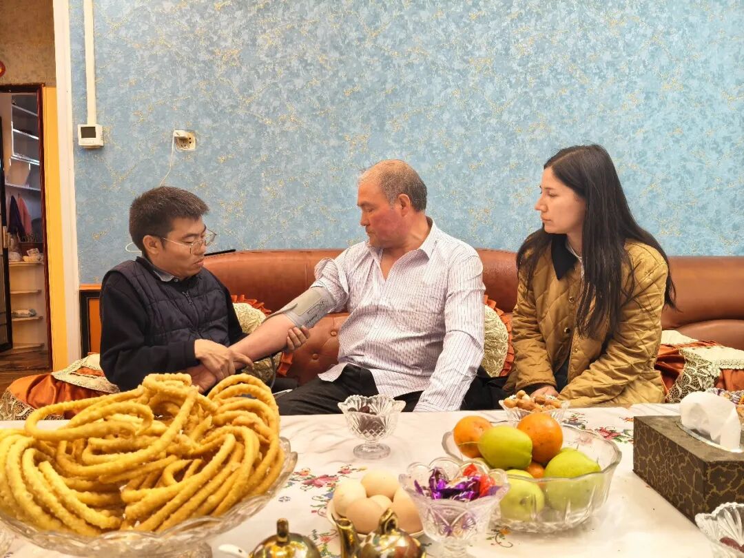 中午李创业出诊回来时,诊所里陆陆续续来了不少病人。李创业就蹲在诊桌前,给买买提·沙吾提老人把脉、量血压。李创业仔细问老人这几天的饮食和用药情况后,开了药,又反复叮嘱怎么吃,直到老人点头听明白。