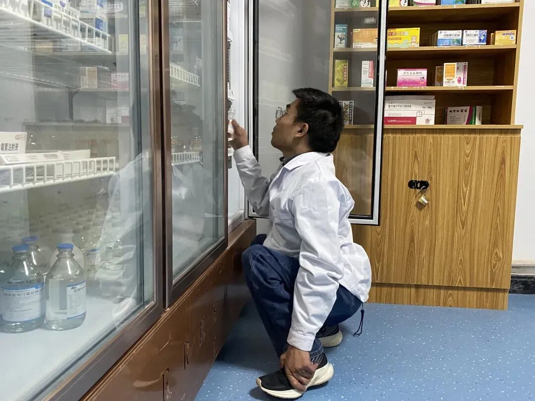 李创业在给患者取药。喀什地区融媒体中心 记者曹宇婷 摄