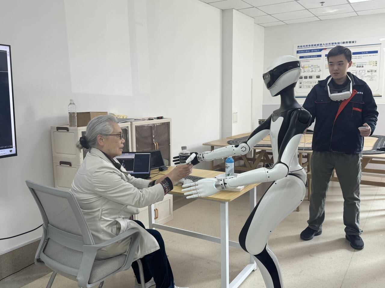 一台在VR示教下,一遍遍递水、取药,在重复中靠近精准与安全;一台在数据支撑下,默默记录老人习惯,在学习中靠近理解与陪伴。