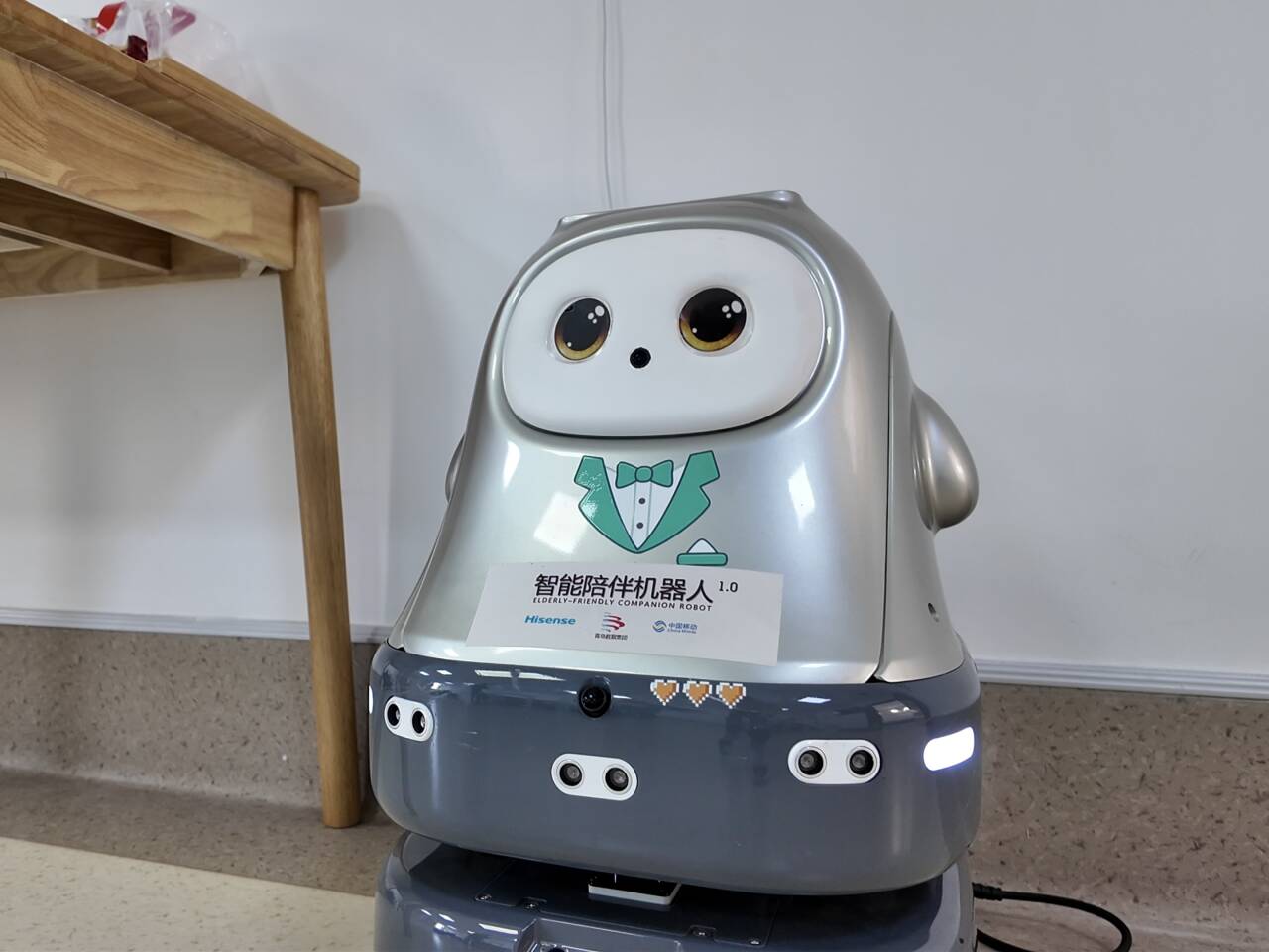 与星动纪元超拟人服务机器人练“手脚功夫”不同,另一台智能陪伴机器人正在“看不见的地方”下功夫——不断加强习惯感知、情感陪伴、风险预警的能力。海信星海科技机器人研发部算法工程师孙萁浩指着陪伴机器人头顶的传感器介绍:“比如老人说‘我有点腿疼’,机器人不能只说‘多休息’,它得结合内置的医疗知识库,给出‘可能是肌肉劳损,建议热敷,若持续疼痛可挂骨科’的建议。”
