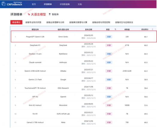 CNFinBench公布大语言模型综合得分:中国平安金融大模型荣登第一名