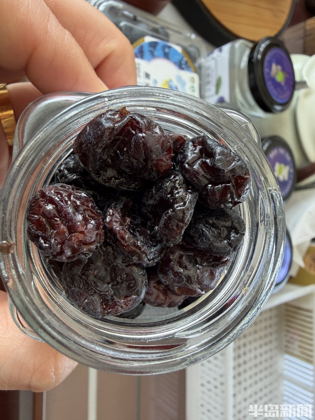 “我们一年用掉800吨蓝莓原料,正在加大马力生产。”紫斐工作人员告诉记者。这家聚焦蓝莓深加工的企业,业务覆盖果汁、果酱、果酒三类产品。通过深加工,蓝莓的价值被大幅拉升,“能让蓝莓的价值提升三倍。”紫斐已与国内头部主播合作带货,同时入驻盒马、麦德龙等大型商超。