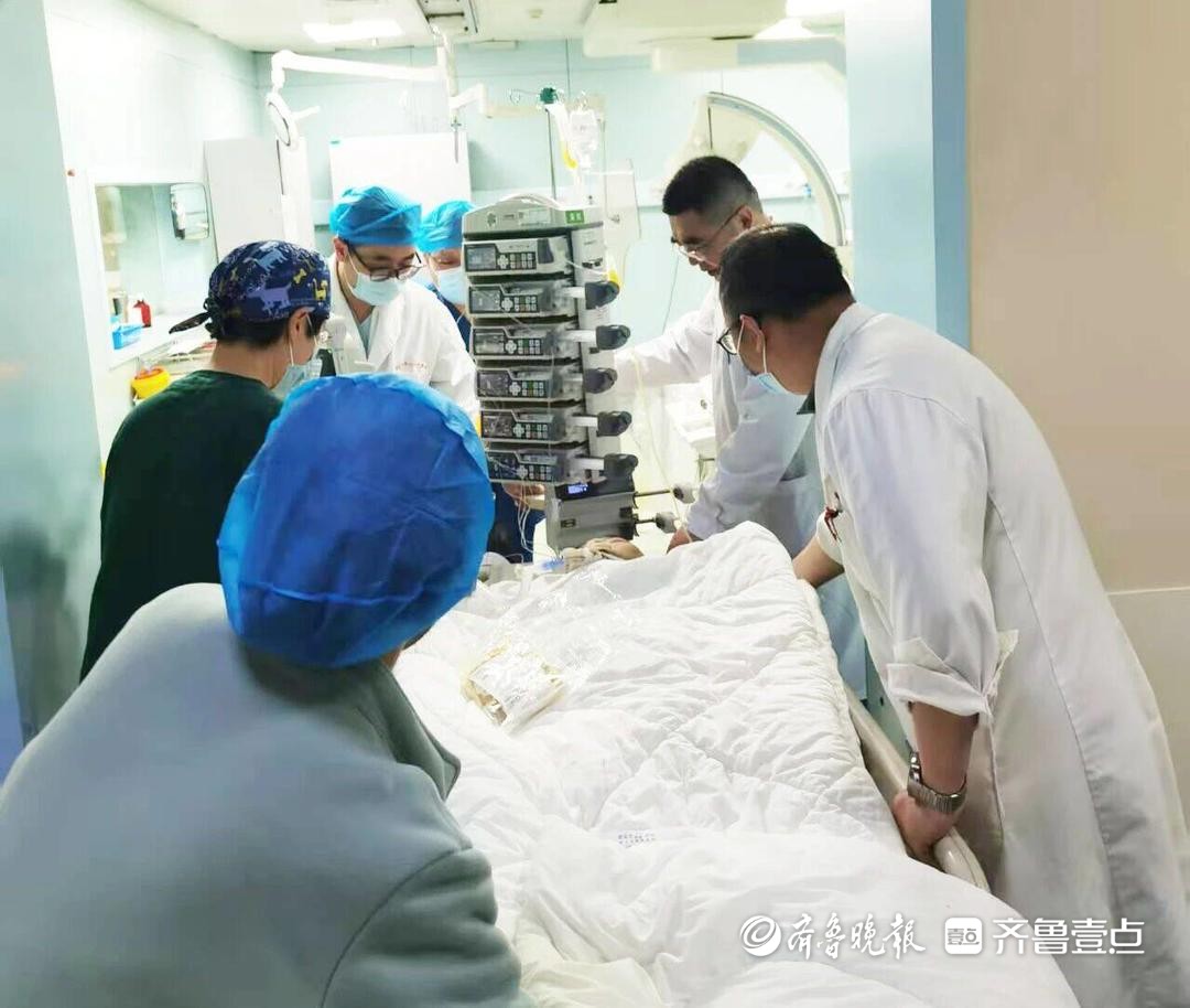16时53分,病情急转直下,患者血压骤降,脉搏微弱,意识开始模糊;17时12分,患者突发室颤,生命垂危,重症医学科主治医师张虎、心血管内一科医师张佳伟立即给予360J非同步电除颤4次,持续高质量心肺复苏;17时23分,患者终于转复窦性心律,恢复自主心跳,紧急转入ICU继续抢救。