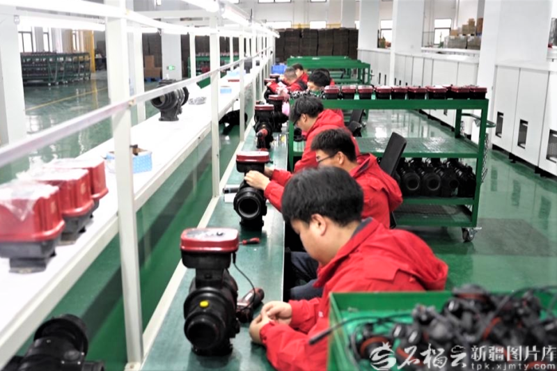 在新疆慧尔智联技术有限公司玛纳斯县分公司生产车间,工人们正在加紧生产智慧电动球阀。张伟继摄