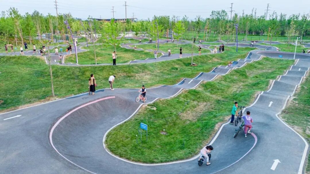 孝妇河骑行公园:山东首个全龄化智慧骑行主题公园,具备专业轮滑、滑板、小轮车赛道,并设有1200米业余骑行道,兼顾专业与休闲。花海林间景色宜人,春日骑行于此,追风赏绿,尽享松弛自在。