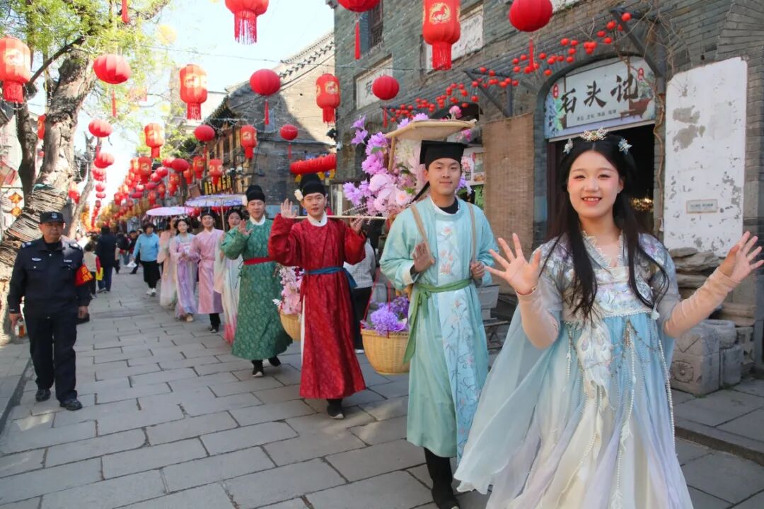 清明假期期间,周村古商城推出十二花神巡游、民俗表演等活动,吸引了众多游客驻足观看、体验。 (记者 胡明 通讯员 穆飞 摄)