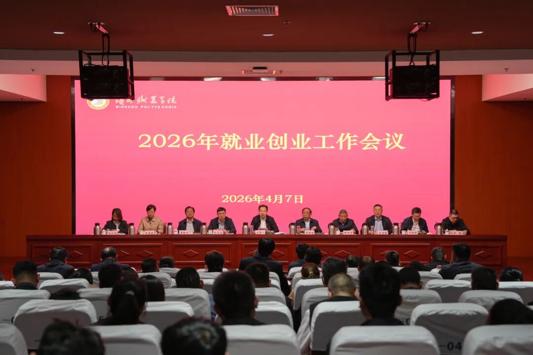 为全面落实党中央、国务院,省委、省政府及市委、市政府关于高校毕业生就业创业工作的一系列决策部署,扎实推进毕业生就业创业各项任务,4月7日,滨州职业学院召开2026年就业创业工作会议。党委书记刘荩一出席会议并讲话,党委副书记、院长申保忠主持会议,全体校领导出席。