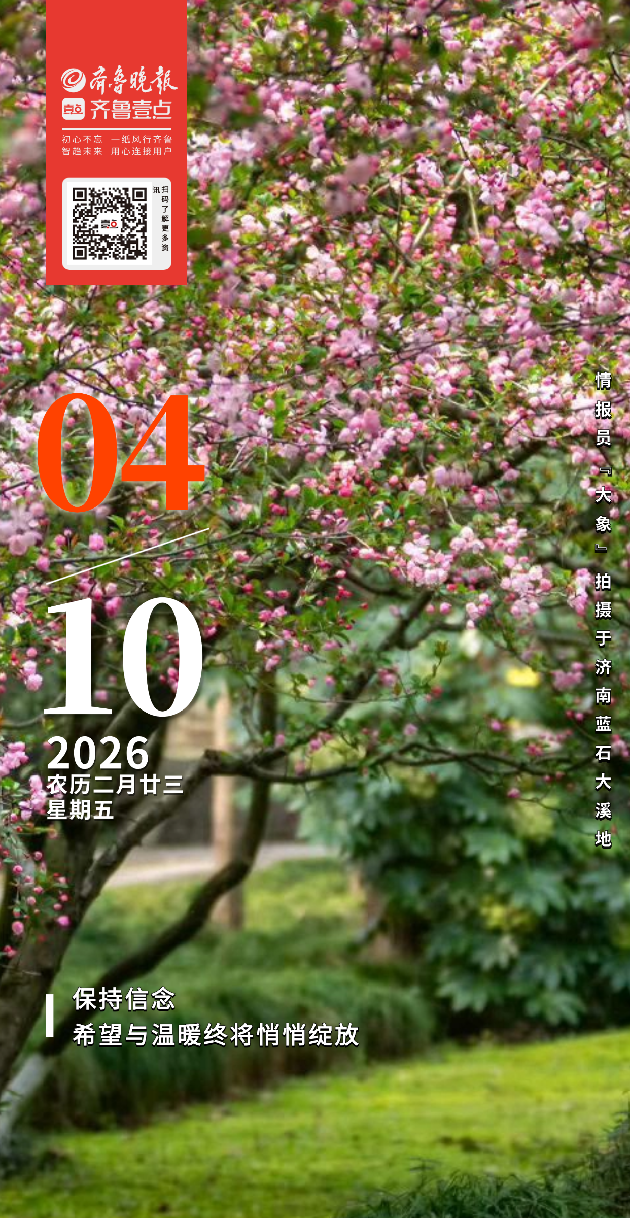 【参与方式】:通过“齐鲁壹点”APP,在情报站参与话题#壹点日历摄影作品征集,红包好礼等你#发送作品及详细介绍(1)拍摄地点(2)拍摄场景(3)拍摄月份日期(4)作品说明即可。