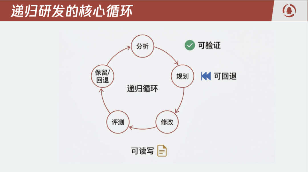 3. 递归研发 。Agent 开始自我成长,不只是执行任务,而是改进自己执行任务的方式。