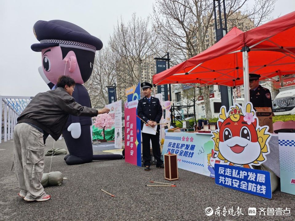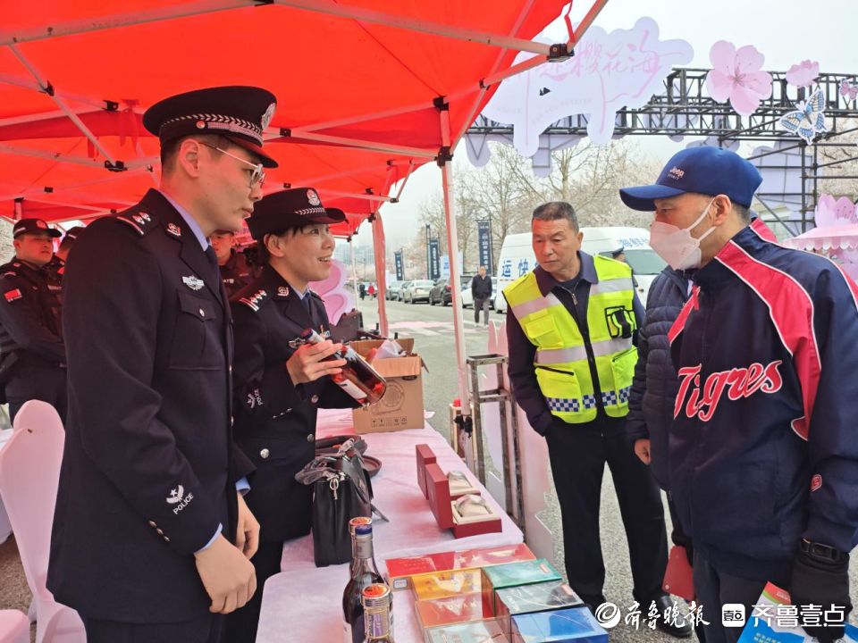4月9日,烟台市在牟平区龙湖·葡醍海湾樱花大道旁开展了一场别开生面的反走私主题宣传活动。活动现场,市民游客一边赏樱花,一边参与法制宣传区的互动问答、观看警用装备展示、体验投壶游戏等丰富多彩的环节。民警现场展示查获的走私烟酒、名包名表等实物,让反走私知识变得可触可感。大家在樱花树下打卡留念,在沉浸式体验中树牢“拒绝走私、守护国门”的法治意识。(齐鲁晚报·齐鲁壹点 钟建军)