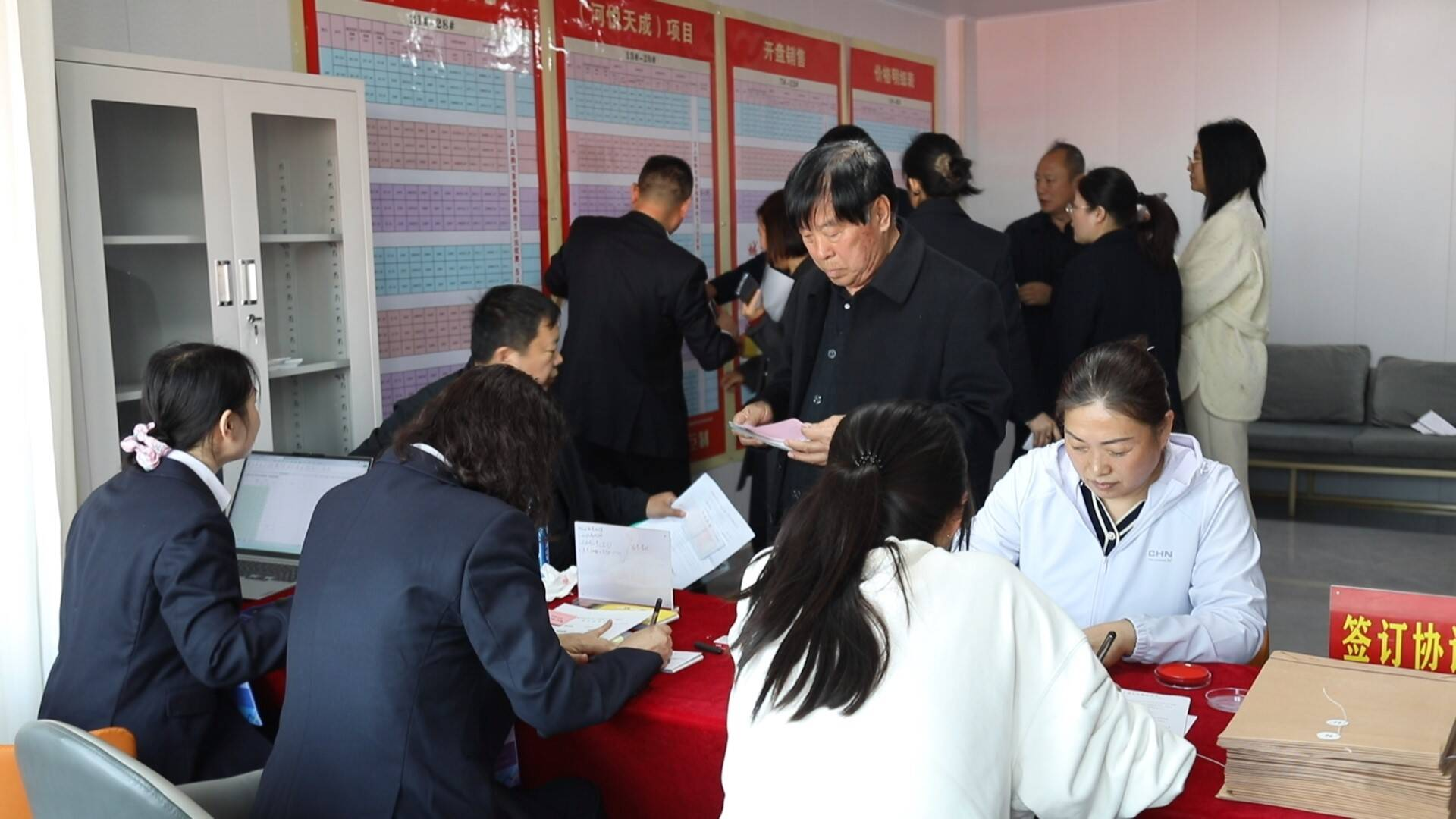 开盘仪式启动后,河悦天成营销中心内人声鼎沸,气氛热烈。从签到区到选房区,准业主们热情高涨、秩序井然。在工作人员的高效引导下,签到、选房、签约、审核销控四大流程顺畅推进,充分展现了项目的高人气与高品质服务。现场还特别设置了砸金蛋抽奖环节,为成功认购的业主送上惊喜好礼,将活动气氛不断推向高潮。