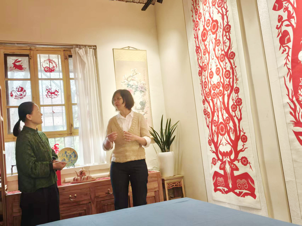 在中华水上古城非物质文化遗产传习所,黄少珊一行参观了梁颖剪纸工作室和地委专署旧址福禄里小院,与剪纸非遗传承人梁颖、市级工艺美术大师、东昌葫芦雕刻非遗传承人李勇深入交流,亲身感受中华传统非遗技艺的独特魅力,并就如何助力乡村振兴、让海外学者近距离领略聊城传统手工艺风采阐述了见解。