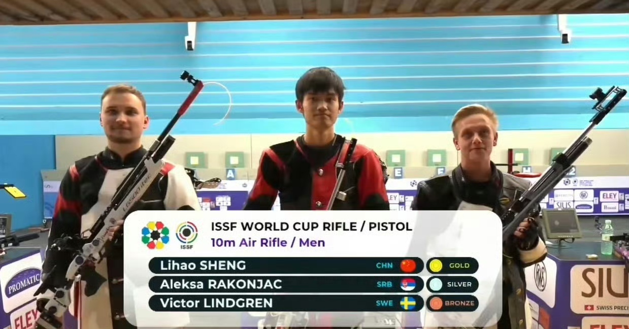 在男子10米气步枪比赛中,奥运冠军盛李豪在决赛中发挥稳定,一路领先,最终以253.9环夺冠。这也是他在本站世界杯获得的第二枚金牌。塞尔维亚选手拉科尼亚茨获得亚军,瑞典名将林德格伦获得铜牌。