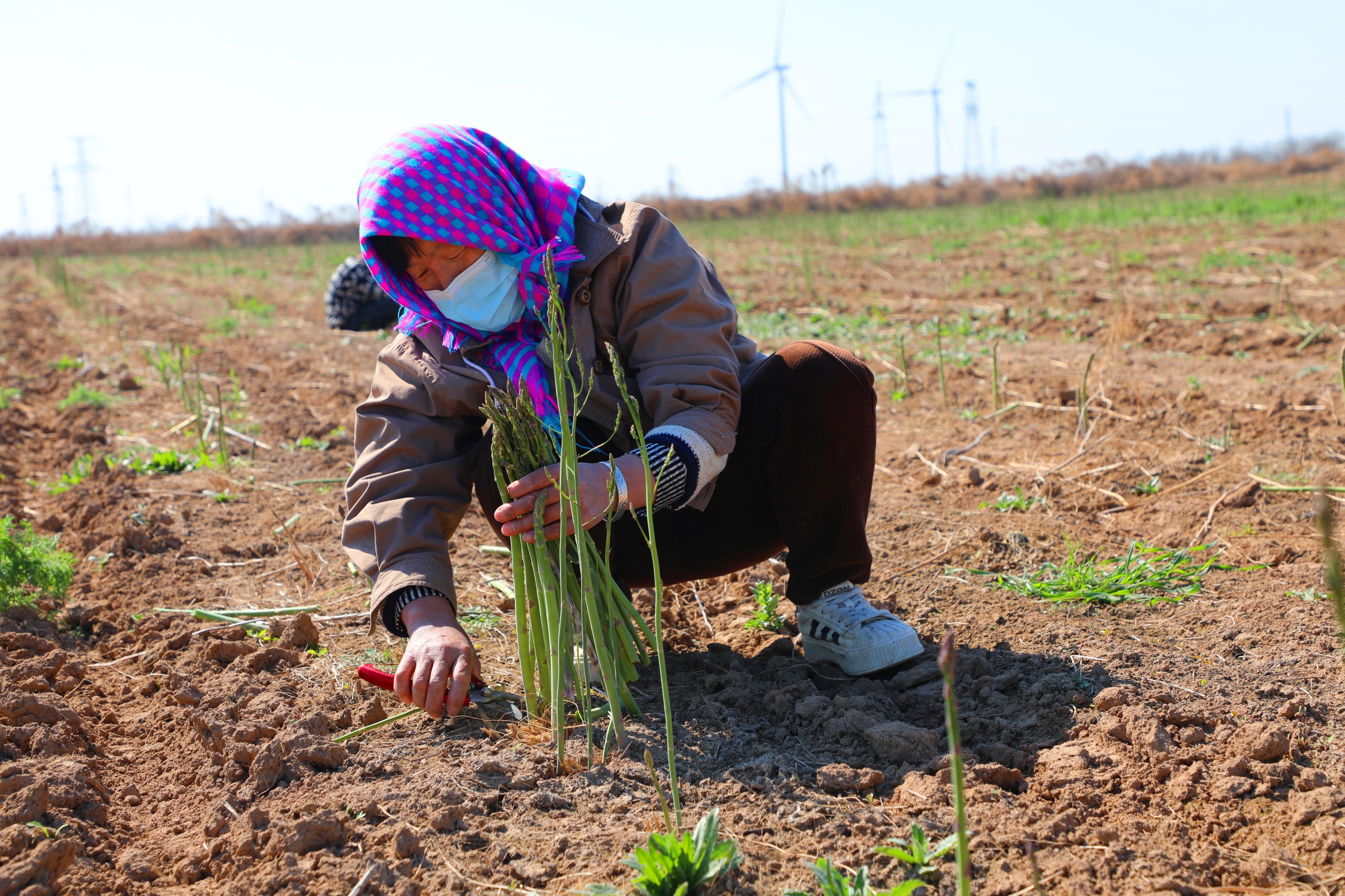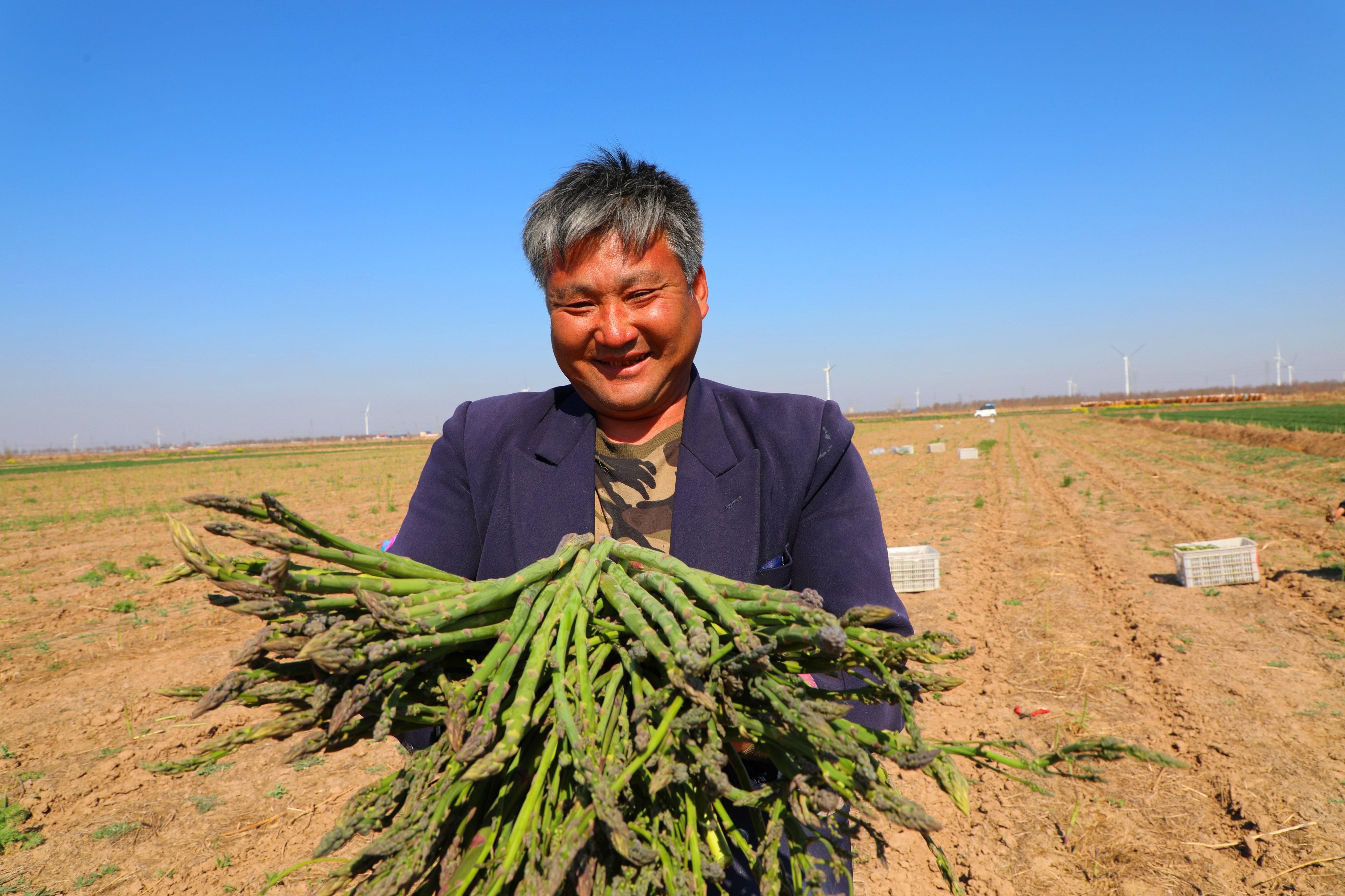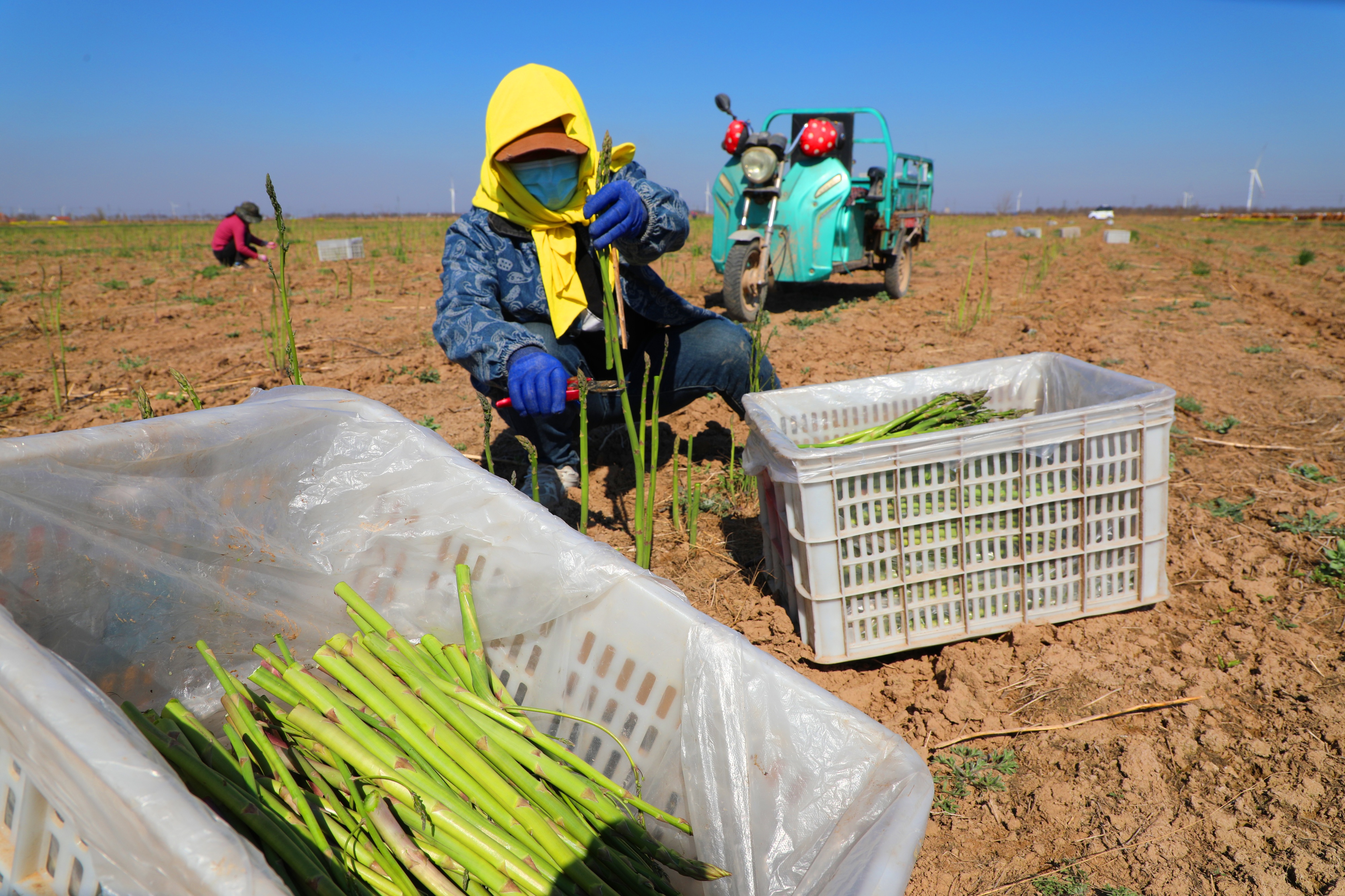 说话间,几名务工村民将装满芦笋的筐子搬运到地头,打包规整后等待回收车辆转运,动作娴熟麻利。“在家门口的基地干活,每天能挣200多块钱,照看家里、赚钱两不误,而且采收的芦笋直接有公司收,不用农户自己跑销路,这日子越来越有奔头。”正在搬运芦笋的村民笑着说道。像这样在家门口就业的村民,在郭金海的基地里就有10多人,芦笋采收季也成了村民们的“增收季”。