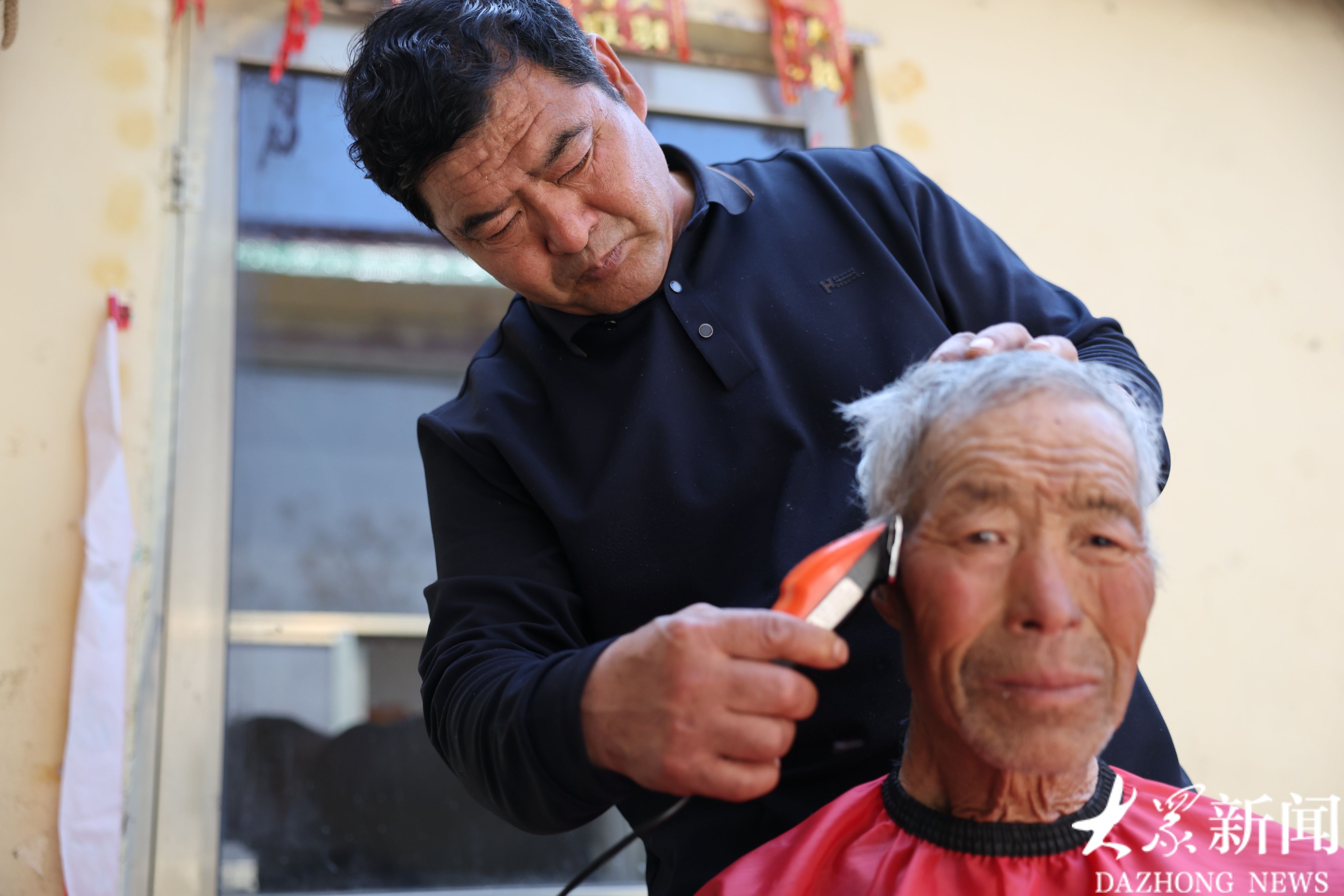 由于山高路远,村党支部书记国成勤承包了为村里老人理发的活。山里没理发店,老人腿脚不便,出去一趟难,他就自己买了推子,学着剪头发,隔三差五给老人们剪得整整齐齐,让人看着精神。