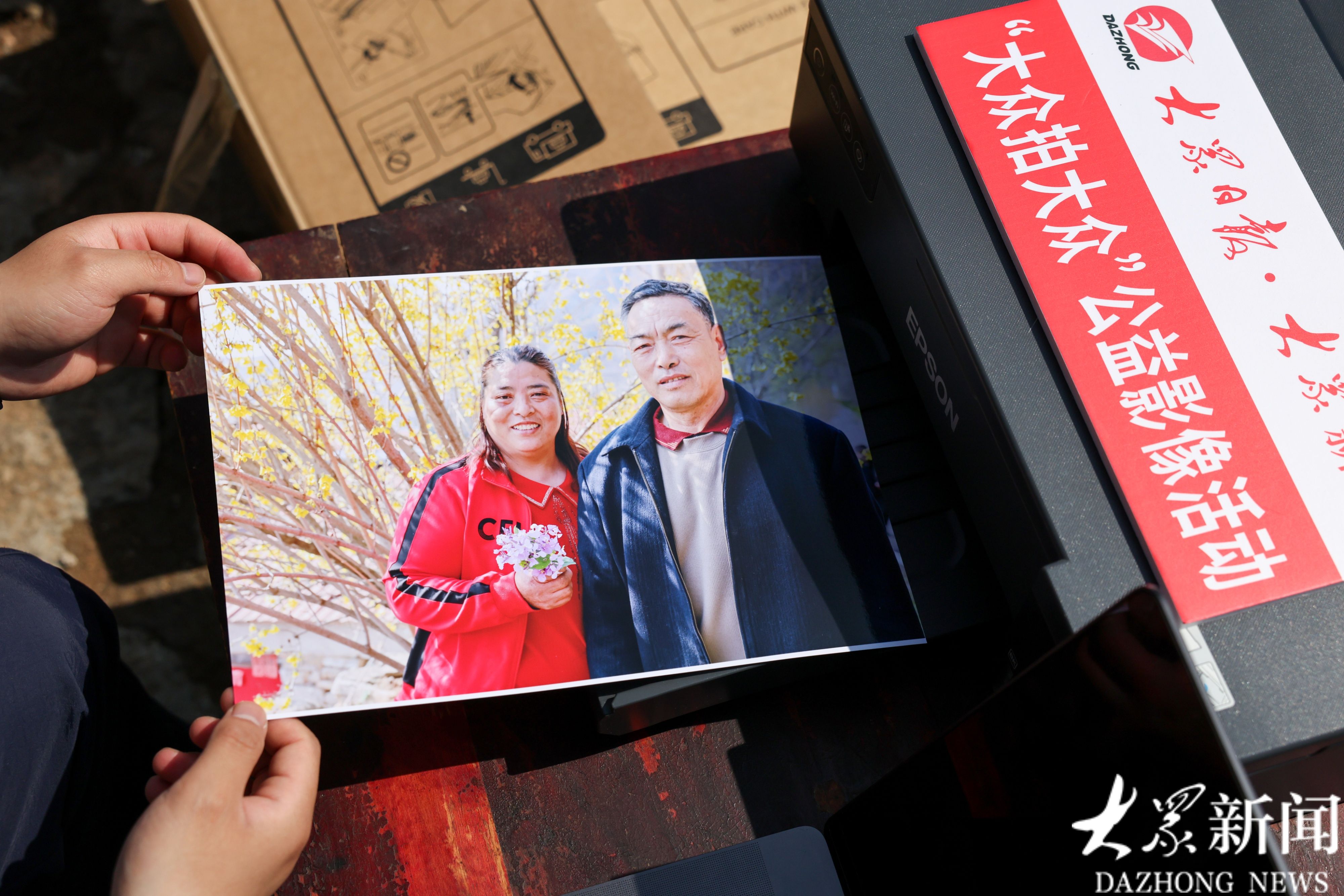 打印机现场为村民打印出了“热乎乎”的照片。有单独的、有夫妻的合影,装上相框后由村书记分给大家。