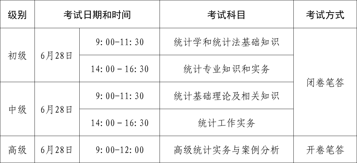 2026年度统计专业技术资格考试时间表公布