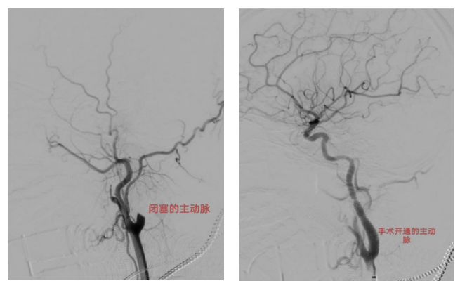 救治团队当即启动脑梗死规范化急救流程,各项工作紧张而有序推进:急诊溶栓治疗迅速落地,从患者入院到接受溶栓仅用时25分钟,创下高效救治纪录;同时紧急联动介入室、麻醉科,每一次沟通都紧扣“患者25岁,务必最快!”的核心诉求,为手术抢占宝贵时间。在多学科默契配合下,张涛介入团队顺利为患者实施急诊取栓术。术中发现,患者病因是颈内动脉夹层引发的远端栓塞,属于临床少见的复杂串联病变,取栓操作难度极大。团队凭借多年积累的介入诊疗经验和精准操作技巧,成功取出血栓,闭塞血管瞬间开通,脑血流完全恢复,为患者保住了大脑功能。