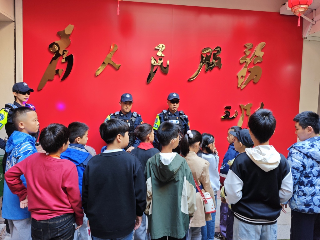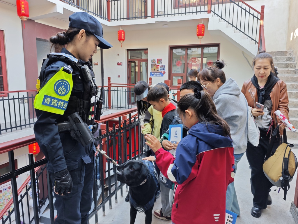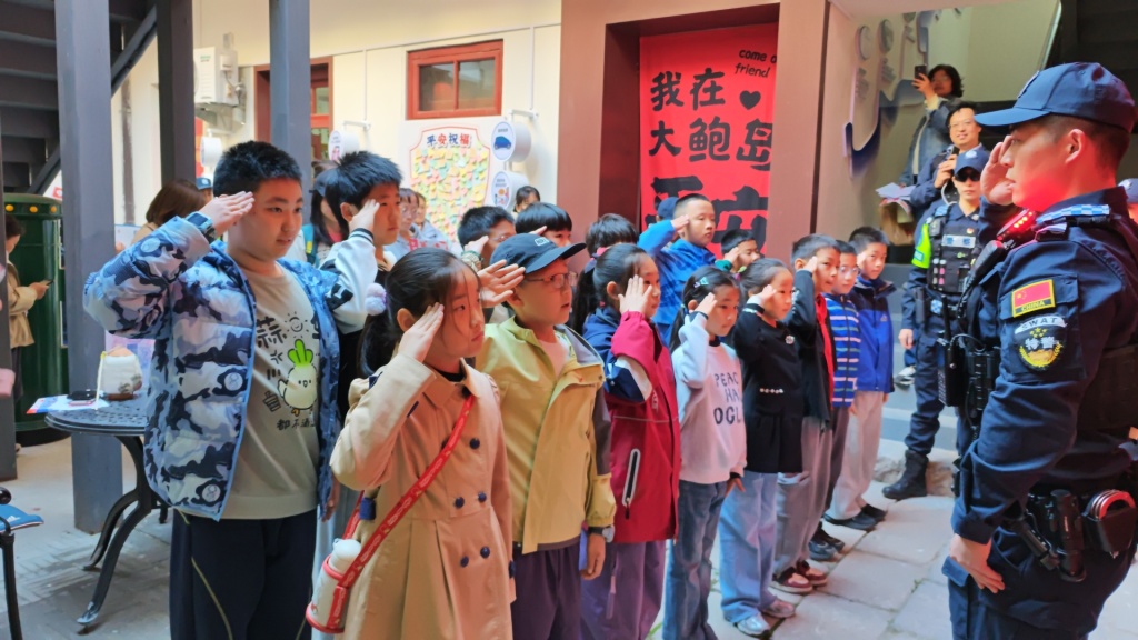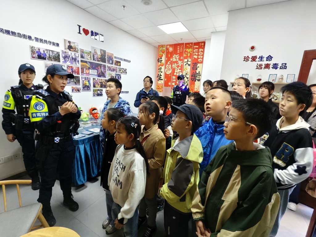 活动伊始,青鸾特巡队队员带领孩子们漫步大鲍岛老城街巷,指尖拂过里院青砖黛瓦,耳边聆听老城历史变迁与里院文化故事,在烟火气中感受老城的独特魅力。随后,孩子们走进警务站,开启沉浸式打卡体验,近距离观察执勤装备、了解基层警务工作流程,直观感受民警日常执勤、便民服务的点点滴滴,深刻体会基层民警默默守护辖区平安的责任与坚守。