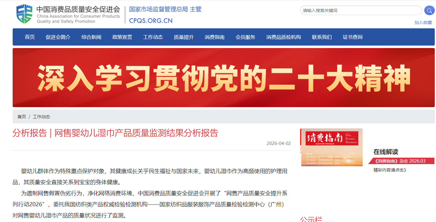 婴儿手口湿巾,几乎是每个有宝宝家庭的必备日用品,用来给宝宝擦嘴、擦手、擦屁屁,家长总认为它是“干净”“安全”的代名词。为遏制网售假冒伪劣行为,净化网络消费环境,中国消费品质量安全促进会开展了“网售产品质量安全提升系列行动2026”,委托我国纺织类产品权威检验检测机构——国家纺织品服装服饰产品质量检验检测中心(广州)对网售婴幼儿湿巾产品的质量状况进行了监测。然而,这份检测报告揭开了这个行业最残酷的真相——21款送检婴儿湿巾,20款检出重金属锑,6款甲醛、防腐剂超标,仅1款100%全棉产品全身而退。 铅、砷、汞虽未超标,但锑作为未被纳入现行湿巾国标必检项目的重金属,竟已在市面上泛滥成灾。
