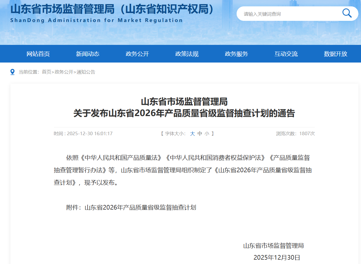 山东省市场监督管理局已发布《山东省2026年产品质量省级监督抽查计划》,湿巾等婴幼儿及儿童用纸品已被纳入2026年省级重点监管范围。此外,聊城市也已发布2026年产品质量市级监督抽查计划,将对湿巾等产品开展专项监督抽查并及时公布结果。建议各位消费者持续关注山东省及各地市后续抽检结果公布。